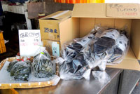朝市での販売商品は当日の漁や時季によって変わります。師崎漁港朝市Facebookでご確認いただくか、各店舗へお問い合わせください。