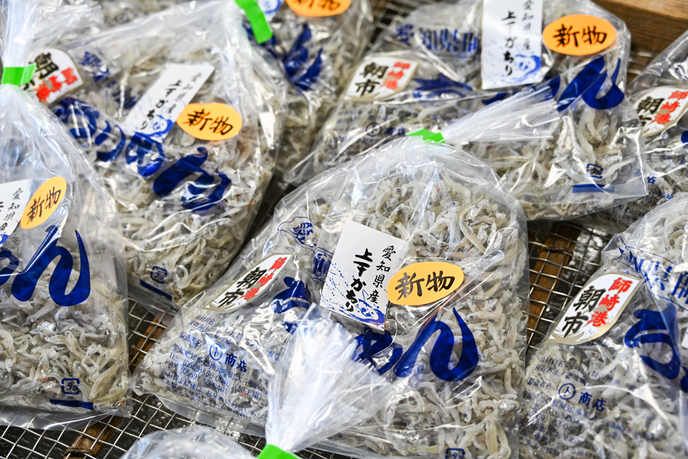 師崎産のかちり、ちりめん、ふりかけ等の海産乾物や干物を販売。