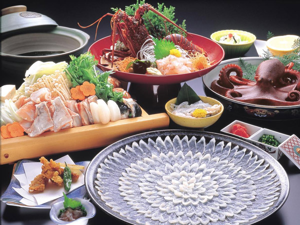宿泊のほか、日帰りのお食事コースもございます。また、冬季(10月~3月末)はふぐコースもございます。(要事前予約)