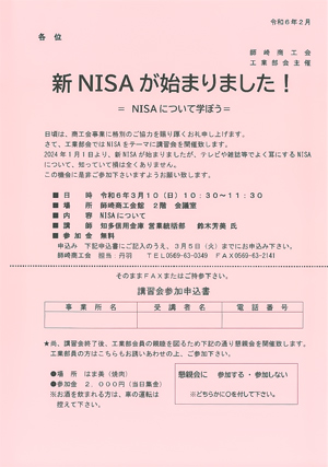 テレビや雑誌等でもよく見るNISAについて、知っていて損は全くありません!この機会にぜひご参加ください。