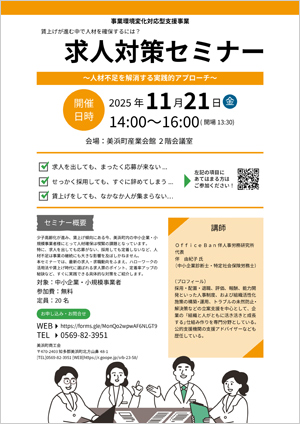 少子高齢化が進み、賃上げ傾向にある今、美浜町内の中小企業・小規模事業者様にとって人材確保は喫緊の課題となっています。