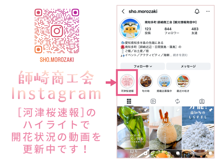 師崎商工会Instagramでは、大井河津桜の開花状況を動画で掲載しています!